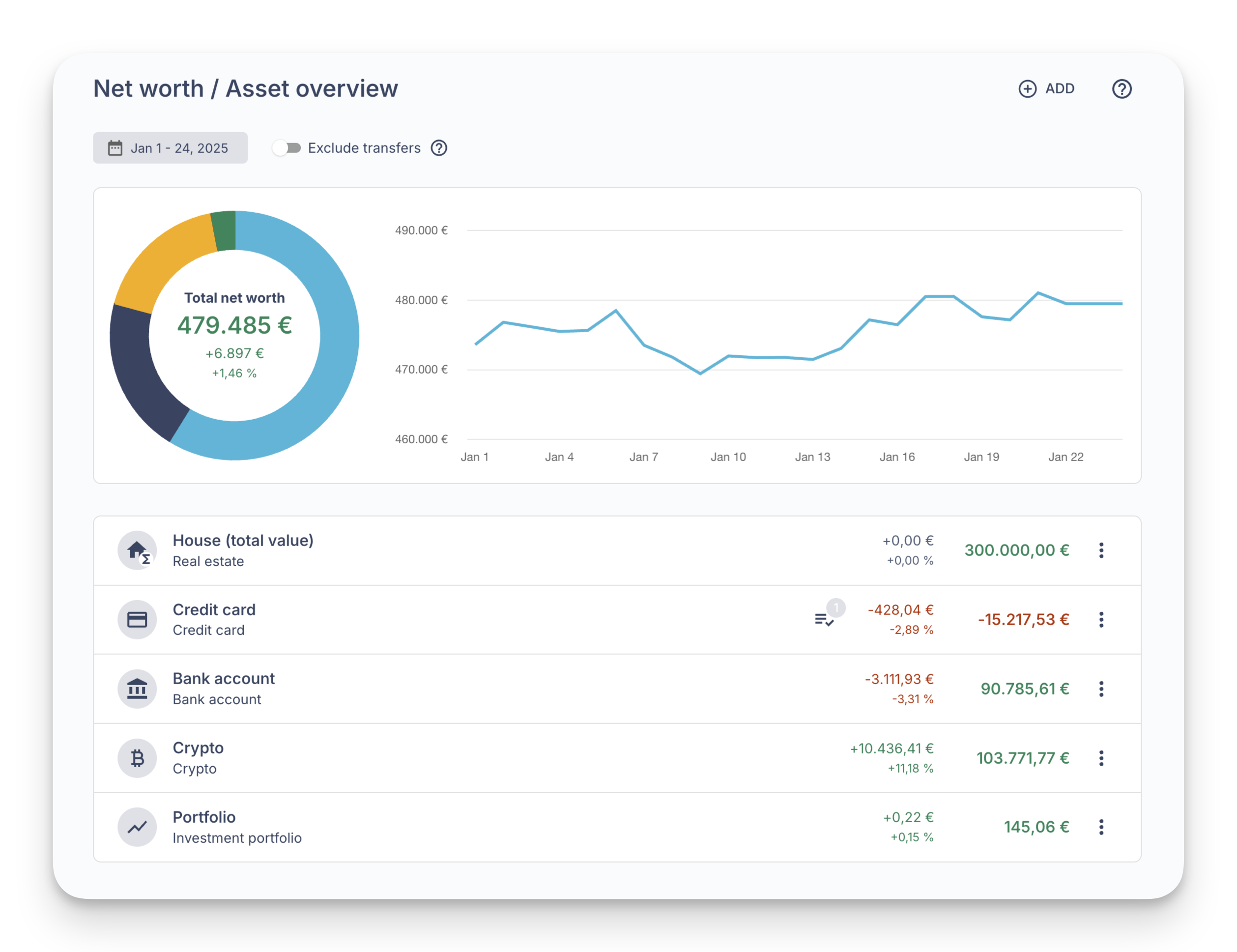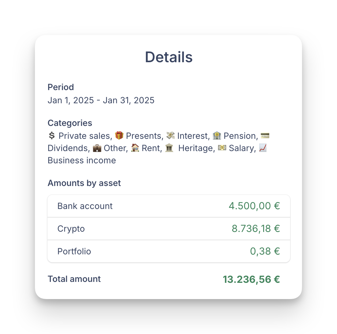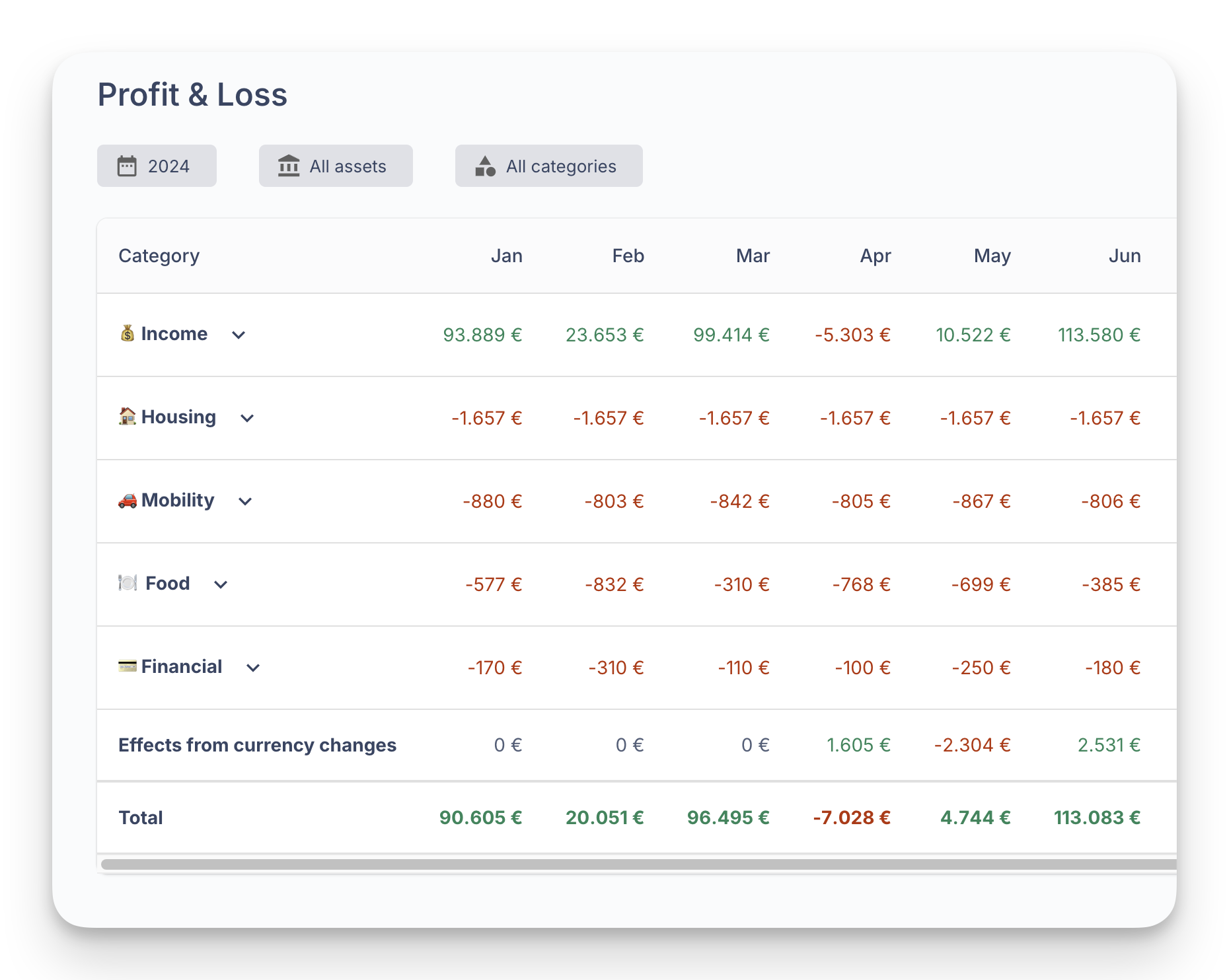 We have improved the drill-down for reports. In the past we always sent you to the transaction list when you clicked on a specific number in the Profit & Loss report or any other analysis. From now on, we will show you a small modal that will summarize from which assets the change comes from. You can then click on the specific asset to see more details (e.g., the specific transactions).